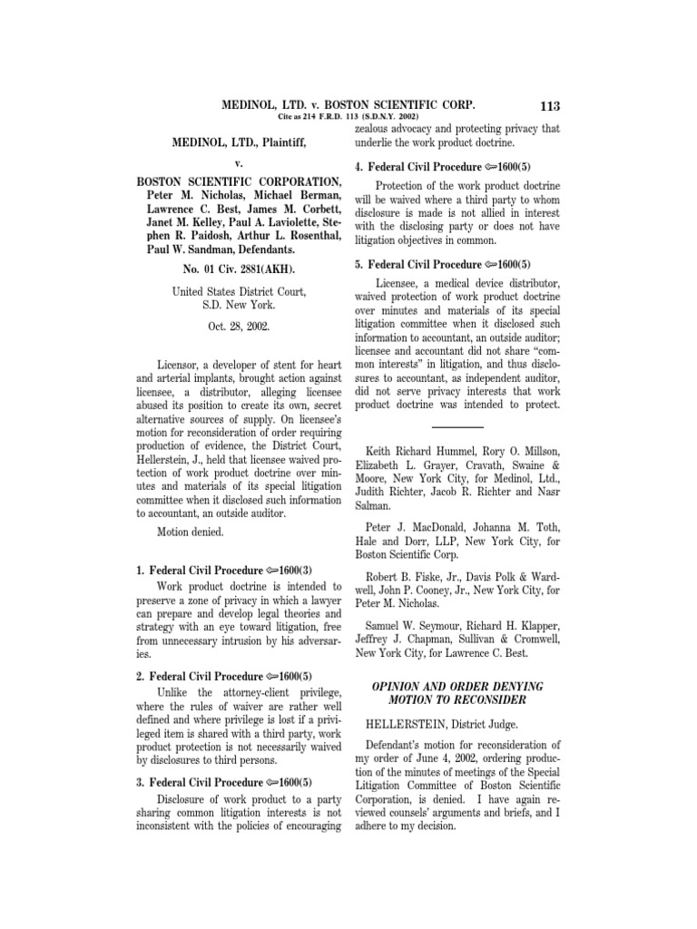 Medinol V Boston Scientific Pdf Discovery Law Lawsuit